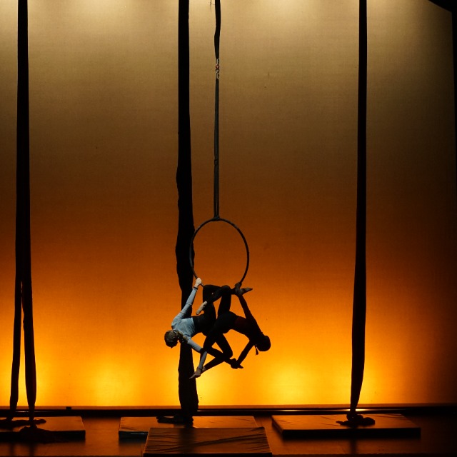 Teles, trapezi, corda i cèrcol es treballen des de la tècnica, la consciència corporal, la seguretat i l’expressió artística.