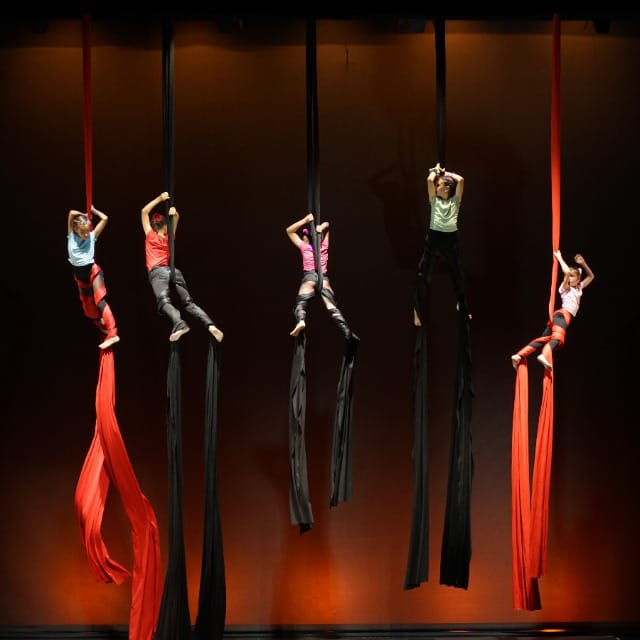 Les disciplines aèries conviuen amb el circ, l’acrobàcia, la dansa i el teatre, perquè cada infant o jove pugui créixer des de la tècnica, la creativitat i l’expressió.
