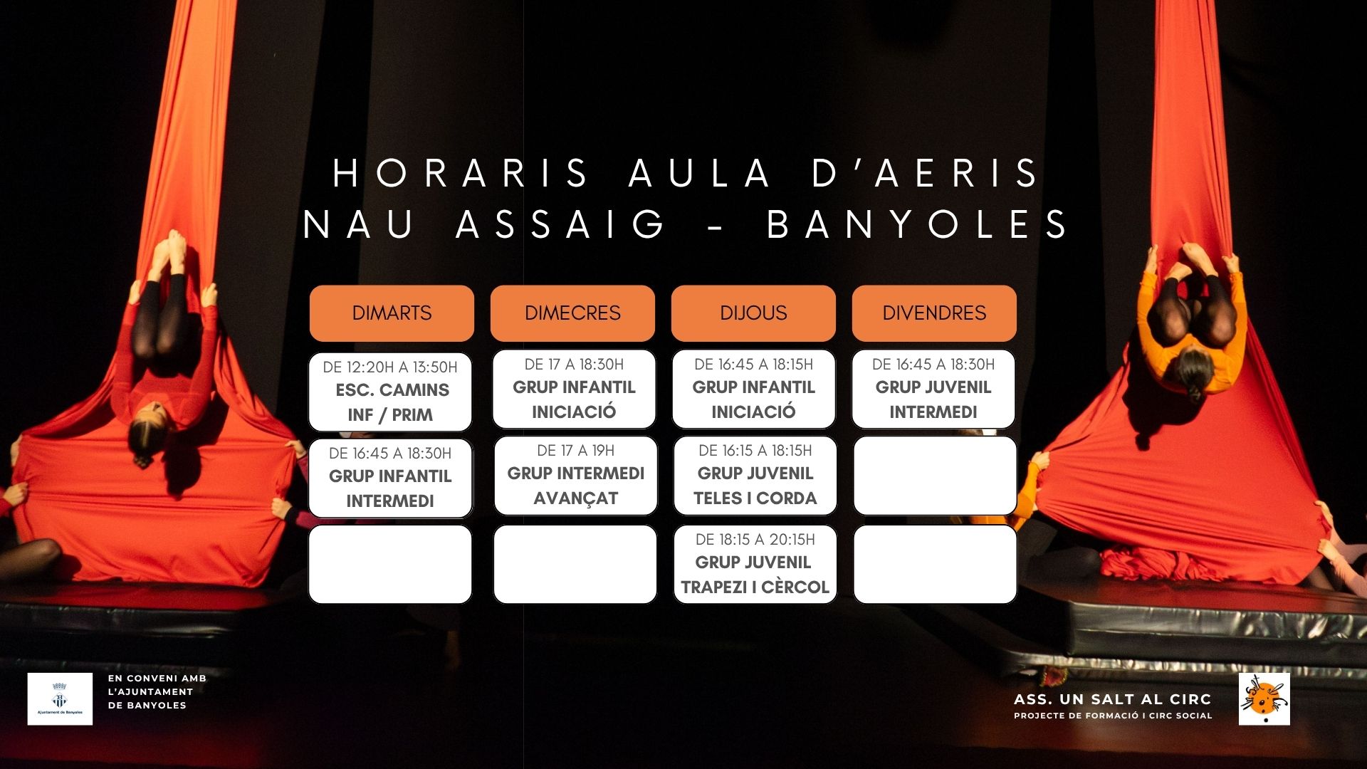Les disciplines aèries conviuen amb el circ, l’acrobàcia, la dansa i el teatre, perquè cada infant o jove pugui créixer des de la tècnica, la creativitat i l’expressió.
