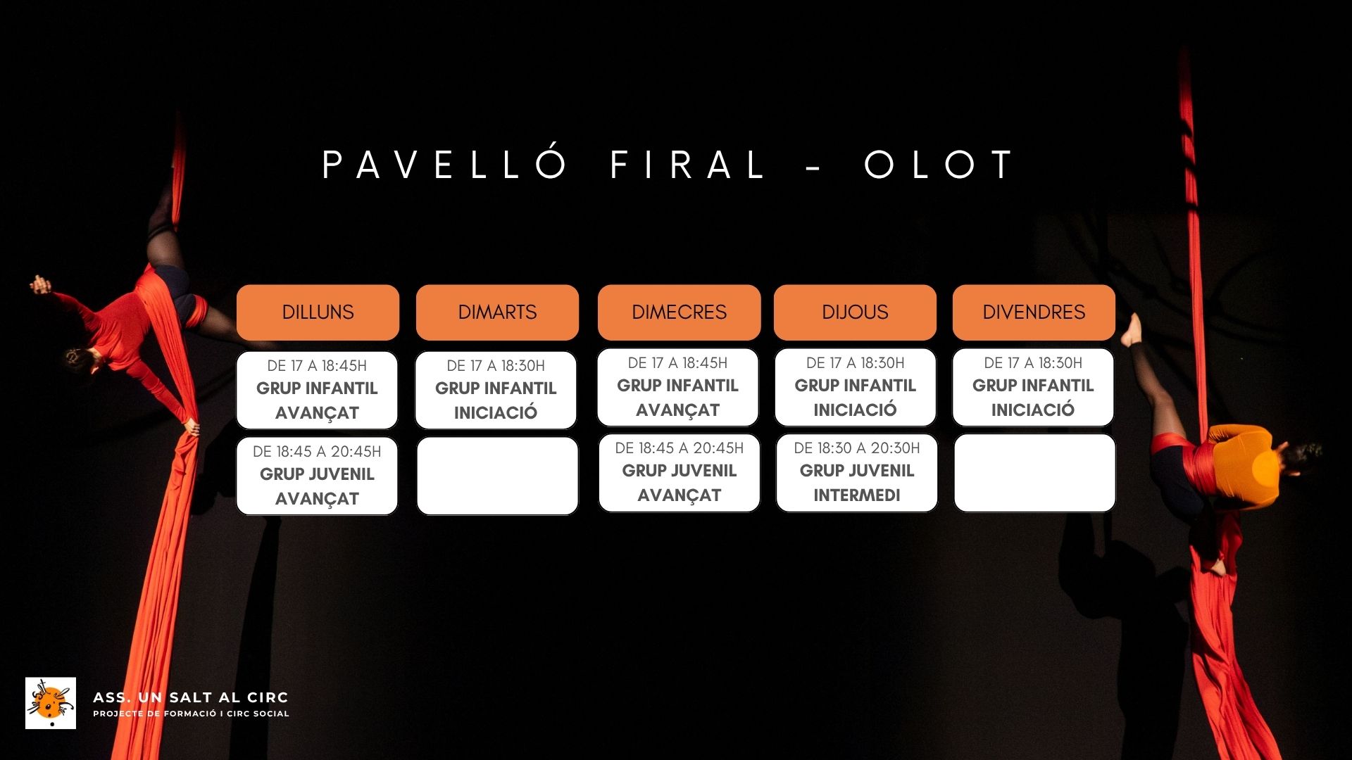 A Olot oferim un espai especialitzat en circ aeri per a infants i joves, amb un recorregut formatiu pensat per créixer pas a pas.